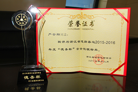 近日,國鴻汽運公司駕駛員嚴安翔被浙江省道路運輸協會評為浙江省道路客運2015-2016年度“德圣杯”安全駕駛標兵。據悉,此次活動評選標準嚴格,全省僅有17人獲此殊榮,嚴安翔是嘉興市唯一一位獲得該榮譽的駕駛員。