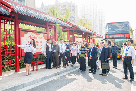 25日上午,游3路文化示范線的雙層巴士載著來自各地的參會代表,前往紅船學院公交首末站參觀。被中共嘉興市委宣傳部聘為嘉興市“紅船宣講團”之“好聲音宣講團”成員的李晨,作為公交黨員志愿者,為代表們做全程講解。一進入公交首末站,濃郁的紅色文化氣息吸人眼球,代表們不自覺地停下腳步駐足觀看,只見公交站務房、候車亭、始發線路和場站其他布設均使用了紅色文化元素,并設有黨員、群眾學習教育基地和暖心驛站,使大家充分感受到了紅船起航地嘉興的獨有文化特色和魅力。微型首末站不僅設有站務室和休息室,而且功能設備齊全,配置了休息座椅、飲水設施、便民箱、公交IC卡補登機、充電設備、雨具、微波爐等便民設施,放置了黨建書籍、報刊等提供黨員群眾借閱,在向市民乘客、戶外勞動者和駕駛員提供周到的便民服務的同時,打造了別具一格的黨員群眾學習交流的紅色文化陣地。這些舉措得到了代表們的充分認可。