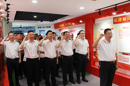 大家首先觀看了《鐵窗相伴的日子》《最后的迷失》兩部法制警示紀(jì)錄片。隨后,大家跟著講解員進(jìn)入法紀(jì)教育展廳,參觀了“一著不慎 滿盤皆輸”“紀(jì)律如山 規(guī)行矩步”“從嚴(yán)治黨 永不停歇”三個主題展區(qū),并仔細(xì)閱讀了“信念動搖入岐途”“貪欲膨脹成碩鼠”“交友不慎釀苦果”“道德滑坡墜深淵”四個方面的反腐案例。最后,全體黨員一起重溫入黨宣誓。