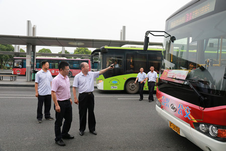 在公交公司,何宇健一行首先到高鐵嘉興南站公交樞紐站開展了現場調研,對71路紅色公交專線打造情況進行了深入了解,現場查看了71路公交車身、內飾等紅色文化主題宣傳情況,并親自上車體驗紅色文化渲染氛圍。在聽取公交公司具體介紹后,何宇健對公交公司“獻禮七一建黨節,我和公交有個約會”專項活動開展情況予以肯定,并希望71路在現有紅色文化宣傳基礎上,更上一層樓,精益求精打造具有鮮明主題特色和豐富文化內涵的紅色公交專線。在隨后的調研座談會上,公交公司圍繞2018年上半年度經營生產情況、重點工作開展情況、存在問題和困難以及下半年工作思路,向何宇健一行進行了詳細匯報。何宇健對公交公司上半年度總體工作開展情況及所做的努力予以充分肯定,并對下一步工作思路提出了五點要求:一是要在年度重點工作上謀思路、想對策、挖亮點、出實效,強化與各區政府的溝通銜接,充分運用公交智能化建設,探索定制公交、區域環線公交等,持續深入推進公建民營模式,在公交線路或營運分公司開展試點,深挖內潛,推進企業降本增效工作。二是要加快科技公交、智慧公交建設步伐,進一步擴展線上充值渠道,建設公交APP,實現市區“銀聯云閃付”公交應用功能。三是要站在全局和長遠角度,進一步完善國際商務區停保場規劃建設工作。四是要繼續發揮黨建引領優勢,黨建工作與企業治理有機融合,不斷增強公交吸引力,提升市民滿意度。堅定有力抓好黨風廉政建設,推動全面從嚴治黨落到實處。五是要強化安全生產工作,納入公司重要議事日程,做到常抓不懈、警鐘長鳴、一抓到底。
