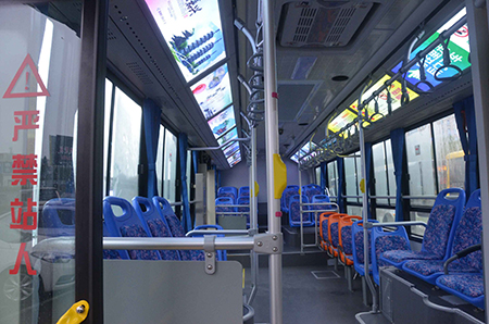 為使市民有一個舒適溫馨的乘車環境,國鴻公司將該線路上的車輛全部替換為今年新購置的混合動力新能源公交車,共投入13輛,車內設施設備齊全,設置合理,座位舒適,具有“低能耗、低排放、高經濟性”的特點,且車輛起步平穩,基本無噪聲。同時,“游1”線所有車輛的車廂兩側采用燈箱式設計,其中一側制作了線路走向圖、乘客須知、安全提示等內容,另一側設有“美麗嘉興”宣傳畫,儼然成為一道美麗的風景。