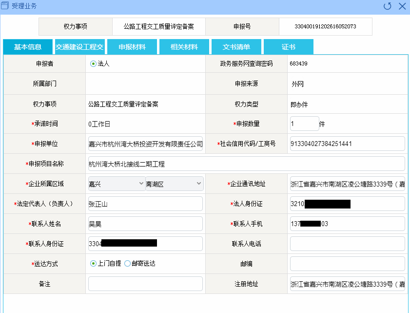 灣北二期工程交工質(zhì)量評定備案服務(wù)信息